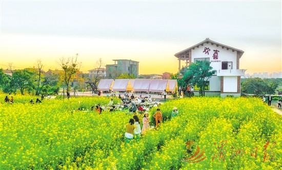 上周末,一企业为客户精心准备的春季主题活动在涵江区白塘镇双福村的欢喜稻田咖啡店办得火热。蓝天下,咖啡店红顶白墙的砖瓦房与金黄色的油菜花海这对“颜值CP”,成为涵江乡土美学的“最佳主角”,“霸屏”社交媒体,让都市人在其中流连忘返、去而复返。