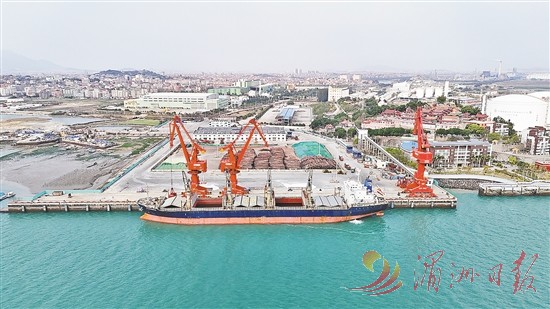 3月下旬,在秀屿港口1号泊位,大型门机挥舞着机械臂,将硫酸铵装载至靠泊港口的塞浦路斯籍“佛塔”轮。该轮于次日装满2.2万多吨硫酸铵后,驶离泊位,前往印度尼西亚。