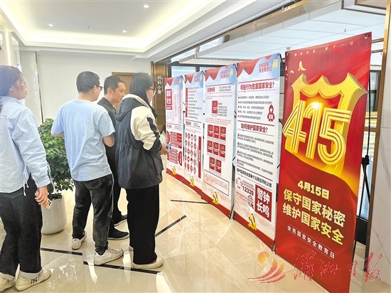 4月10日,荔城区黄石工业园区总工会在华志共享职工之家开展以“全民国家安全教育 走深走实十周年”为主题的“4·15”全民国家安全教育日宣传教育活动,提高全民国家安全意识和法治意识。图为园区工厂职工通过观看宣传展板等,了解国家安全教育知识。