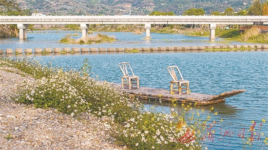 4月中旬,记者在涵江区庄边镇萍湖村看到,萩芦溪河岸景致如画。竹筏静浮河面,岸边小花摇曳。远处桥梁横跨,青山作衬,尽显自然之宁静与美好。全媒体记者 陈斌 摄