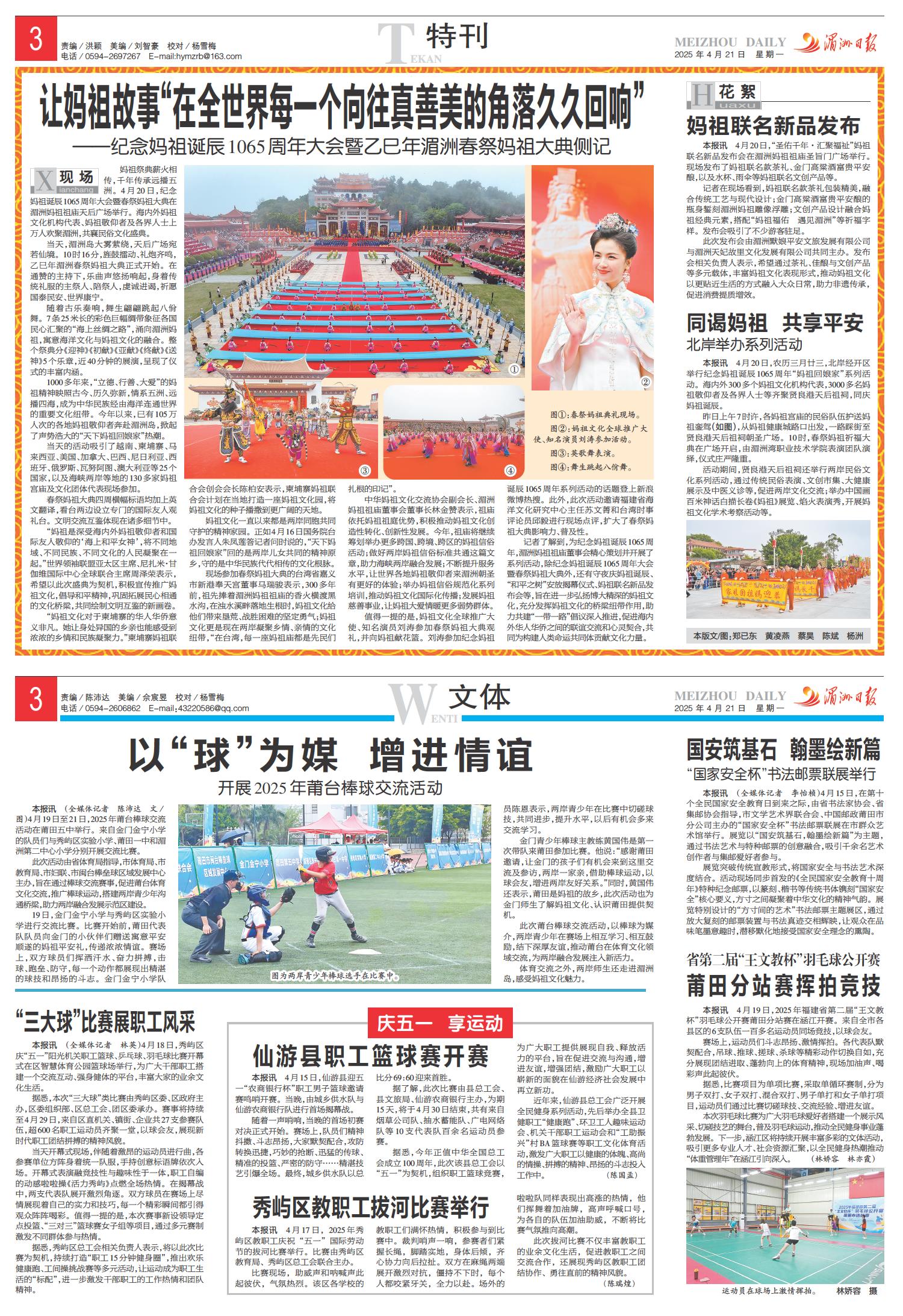 A1 要闻 A2 要闻 仙游观察 A3 特刊 文体 A4 国内国际