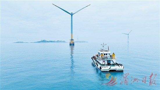 “看到了吗?前面就是鸬鹚岛。”船员指着前方小岛说,海上风电事关民生,一台风机转一圈的发电量约9千瓦时,每天发电量可供50个家庭一年用电。这些海上风机产生的电能经由海底电缆传输至岸上,由鸬鹚岛升压站、平海保营陆上升压站,并入国家电网,输送到千家万户。