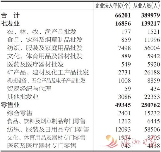 2023年末,全市共有批发和零售业企业法人单位【1】66201个,从业人员389979人,分别比2018年末增长225.3%和118.6%。