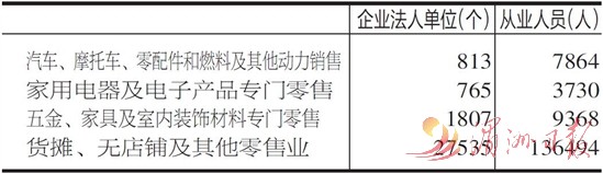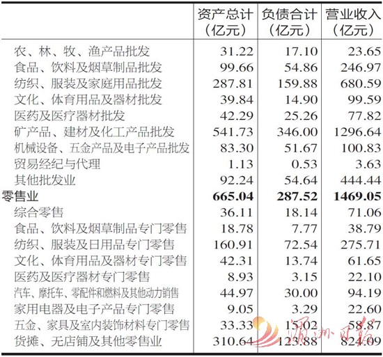 在批发和零售业企业法人单位中,批发业占25.5%,零售业占74.5%。在批发和零售业企业法人单位从业人员中,批发业占35.7%,零售业占64.3%(详见表4-1)。
