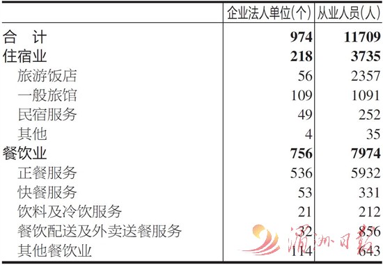 2023年末,全市共有住宿和餐饮业企业法人单位974个,比2018年末增长14.9%,从业人员11709人。