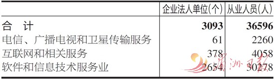 2023年末,信息传输、软件和信息技术服务业企业法人单位资产总计77.25亿元;负债合计41.61亿元,比2018年末增长23.2%。