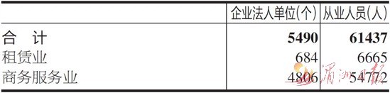 2023年末,全市共有租赁和商务服务业企业法人单位5490个,从业人员61437人,分别比2018年末增长91.7%和57.1%。