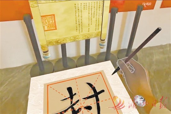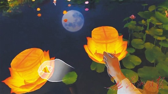 游客通过头载式设备可实现抓取莲花、书写文字等非观看式交互体验。