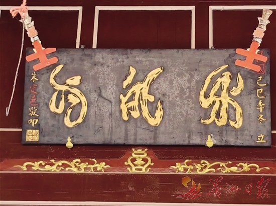 ▲海安村忠臣庙形似“图腾”的牌匾。
