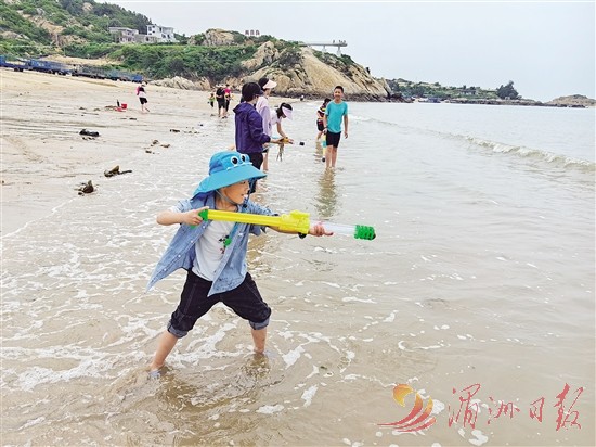 立夏时节,市民携孩童奔赴海边,于沙滩浪间嬉戏,畅享莆阳好空气。全媒体记者 林英 摄
