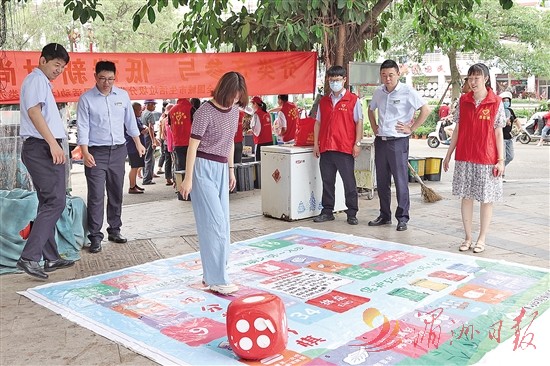 当天,活动在一场别开生面的垃圾分类知识讲坛中拉开序幕。垃圾分类巾帼环保讲师陈碧云采用图文并茂的PPT课件以及互动问答的形式,详细讲解分类意义、政策规范、分类标准等内容。随后,在山亭农贸市场,工作人员通过摆放展板、悬挂横幅、发放宣传折页等方式,向群众耐心普及垃圾分类知识。同时,设置有奖竞答、分类转盘及飞行棋等互动游戏(如图),点燃群众参与垃圾分类的热情。
