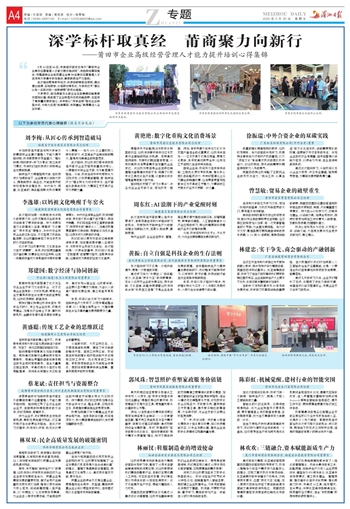 此次培训,亦让我深切感受到市委组织部对企业家培养的重视与用心。从课程设计到企业对接,处处彰显高效担当。今后,我定当将所学所思转化为实际行动,以科技赋能管理,把“新质生产力”理念转化为设计数字化、生产智能化的具体行动,为莆田工艺家具产业升级贡献力量。