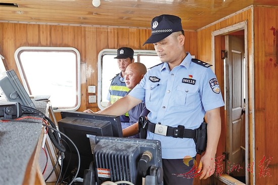 北岸公安海防大队、“五联防”海安巡逻队巡检深海捕捞渔船北斗定位、船内安全设施。