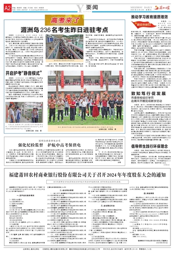 本报讯 (全媒体记者 郑已东 林晓玲 文/图)高考临近,为方便考生尽早熟悉考点情况,6月5日,湄洲岛多部门联动,护送参加今年高考的236名考生集中乘船出岛,提前进驻考点,备战高考。