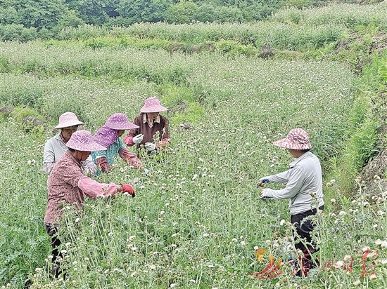 6月,正是白花大蓟采收的季节。在龙山村的白花大蓟种植基地,种植户林友智正仔细挑选成熟的花朵采摘。