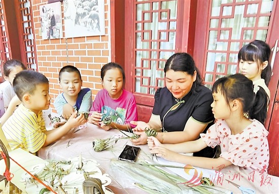 6月中旬,城厢区逸夫实验小学与市群众艺术馆联合推出“童绎薪传”文化传承展,将校园师生创作的艺术作品引入文化馆展厅。图为学生在体验传统草编技艺。