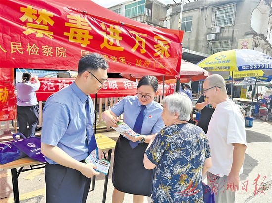 禁毒斗争,根基在于全民参与。6月20日,涵江区人民检察院与国欢镇党委政府联合开展禁毒普法咨询活动,将禁毒宣传阵地前移至烟火气最浓的农贸市场,在人流密集处设立咨询宣传台。