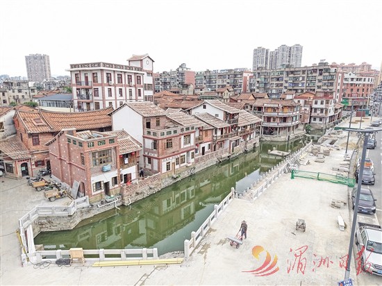 记者在端明陡门看到,河岸边的红砖厝外立面修缮已经完成,焕然一新的建筑外墙在阳光下泛着温润的朱红色光泽,为滨水景观增添了一抹靓丽的色彩。施工人员或忙于步道、广场铺装,或建造花池、路面绿化,各项施工多点并行。