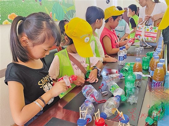 开营仪式上,秀屿区妇联主席廖荔红希望孩子们争做“垃圾分类小先锋”,以实际行动带动家庭、辐射社会。工作人员以通俗易懂、琅琅上口的分类口诀授课,并向每名营员发放包含环保袋、分类手册在内的“绿色成长礼包”。在实践环节,营员们动手参与环保酵素制作和“变废为宝”手工创作,体验利用废旧红包制作灯笼、瓶盖制作靠背椅、塑料瓶制作挂饰等过程,切身感受资源再利用的乐趣(如图)。夏令营还组织营员前往圣元环保电力有限公司参观垃圾焚烧发电全过程,直观了解生活垃圾“无害化、减量化、资源化”处理流程,进一步拓宽环保视野。
