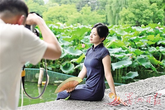 8月3日,游客在杭州西湖赏荷拍照。时值暑期旅游旺季,杭州西湖景区游人如织。多年来,杭州西湖景区坚持“生态优先、系统治理、遵循科学、因地制宜、持之以恒”理念,融自然、人文、历史、艺术为一体,呈现出更为丰富的山水美学与文化内涵,传递着中国的文化自信。新华社记者 毛竹 摄