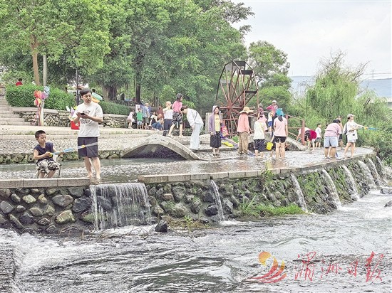 夏日,涵江区江口镇蒜溪公园人气旺。清凉溪水畔,市民与游客纷纷前来消暑纳凉,大家玩水嬉戏,享受惬意时光。全媒体记者 林英 摄