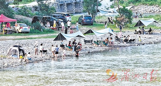 深固大桥露营地成为游客亲水避暑的好去处。 全媒体记者 杨怡玲 摄