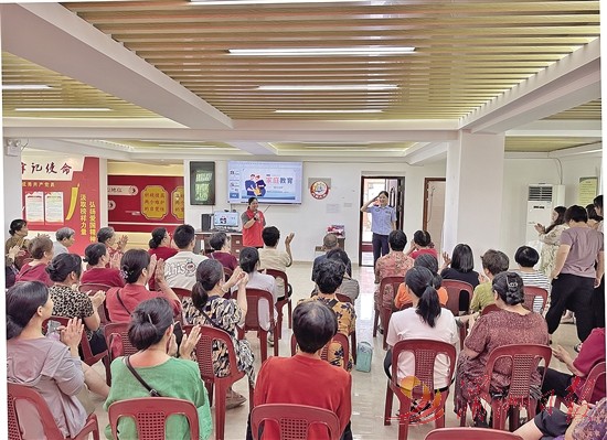 图为民警吴玲玲在镇海街道英龙社区开展家庭教育公益讲座。