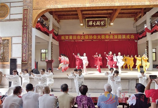 本报讯 (全媒体记者 郑已东 文/图)以拳会友,以武传情。8月16日,莆田靖恭妈祖文化交流中心迎来市太极协会组织的专场太极表演,为跨文化交流注入新活力。众人以畅叙文化交融之美的方式致敬妈祖,弘扬妈祖“立德、行善、大爱”精神。