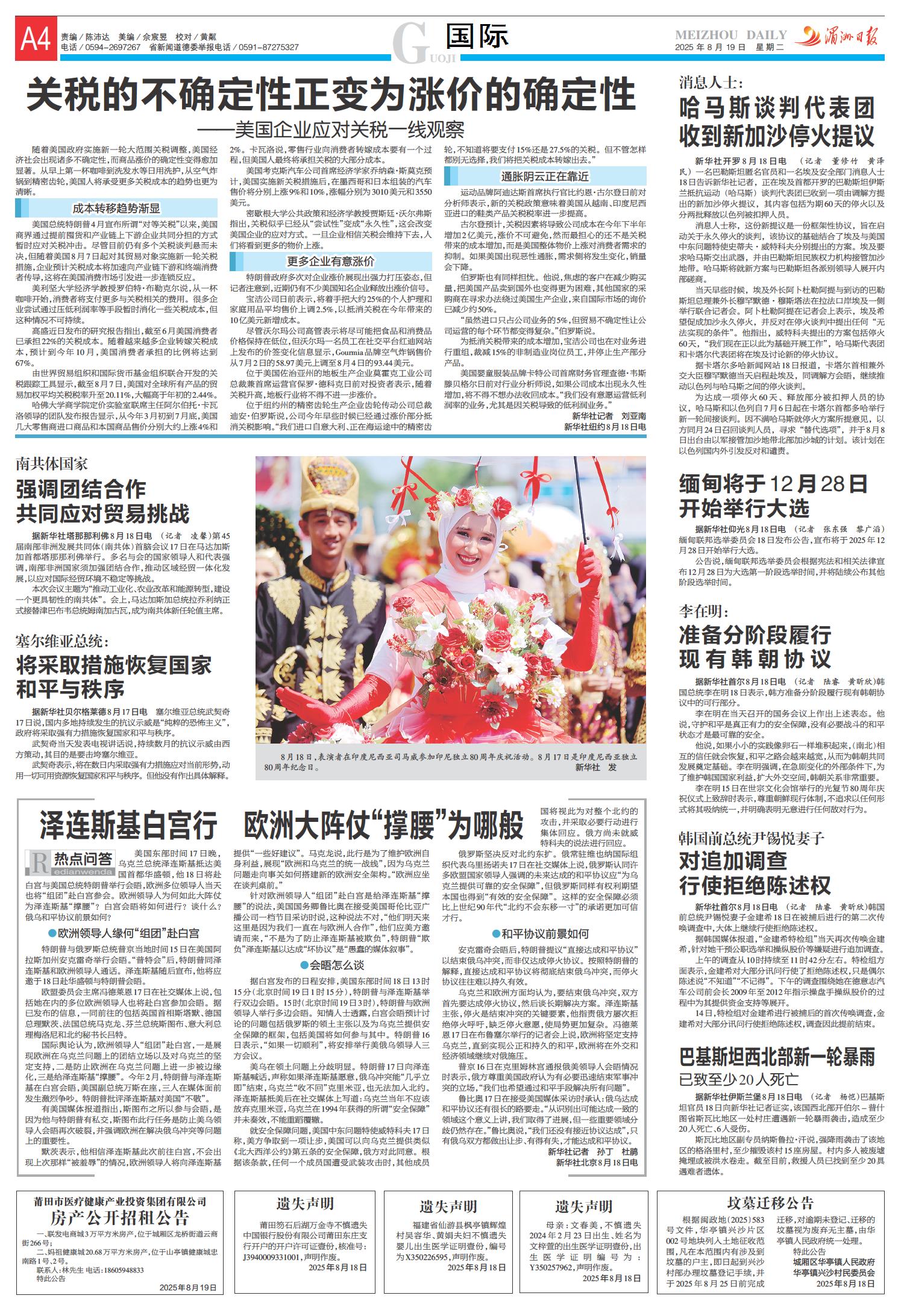 A1 要闻 A2 要闻 A3 国内 A4 国际 B1 民生 B2 荔城观察 生态 B3 三湾潮 B4 妈祖 快评
