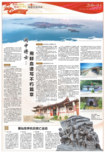 记者从市委党史方志室了解到,在抗日战争中,仅莆仙两县牺牲的闽中北上抗日将士就有23位。他们用自己的生命换取民族的独立,把鲜血洒在抗日战场上,谱写出不朽的篇章。