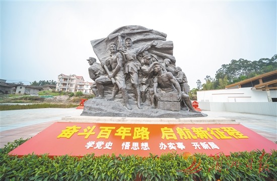 涵江区大洋乡闽浙赣人民游击纵队闽中支队司令部旧址石碑上的英雄群像。