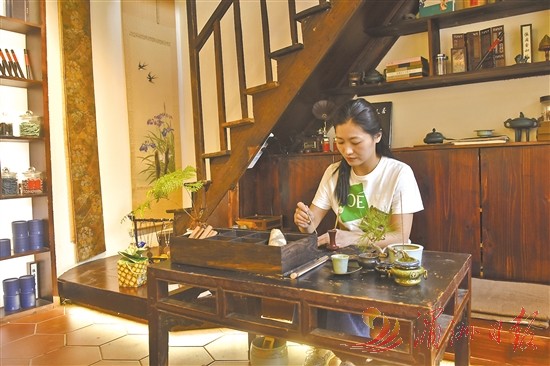 清晨的兴化府历史文化街区,行人尚稀。陈燕飞推开“故里故香”的门,放下手机,点香、泡茶,在袅袅烟气中轻轻呼吸,为自己“续电”。