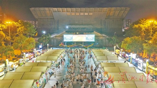 莆田市足球联赛比赛期间,市体育中心南广场电子大屏前,许多市民共同观赛。市集人潮涌动,体育文化与夜市经济相得益彰。全媒体记者 杨洲 摄