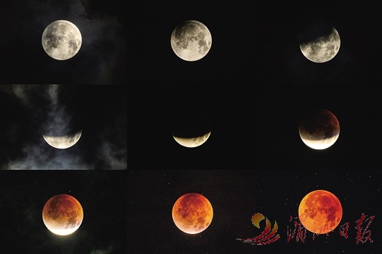 9月7日午夜至8日凌晨,天宇上演一次壮观的月全食,这是今年我国境内唯一一场全程肉眼可见的月全食。图为记者拍摄的月全食形成过程。全媒体记者 蔡昊 摄