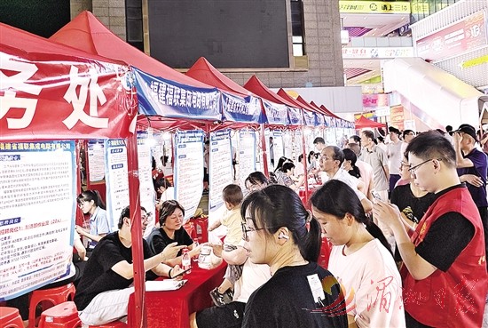 本报讯 笔者昨日获悉,涵江区2025年“百日千万招聘专项行动”暨人才夜市专场招聘会日前在涵江日月星辰广场举办(如图),将群众喜闻乐见的夜生活场景与求职招聘服务相融合,助力求职者精准对接岗位需求,实现稳岗就业与夜经济发展的双赢。