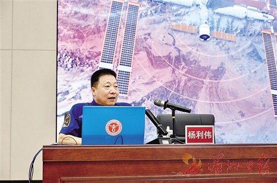 图为杨利伟为莆田一中师生做航天科普公益讲座。