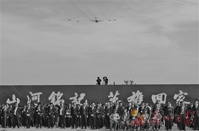 9月12日,第十二批在韩中国人民志愿军烈士遗骸回国。这是在沈阳桃仙国际机场,接运烈士遗骸回国的运-20专机在4架歼-20飞机伴飞护航下即将降落。 新华社记者 潘昱龙 摄