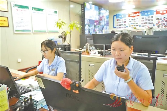 ▲值班人员连线奔忙在路面的环卫作业车驾驶员,叮嘱注意事项。