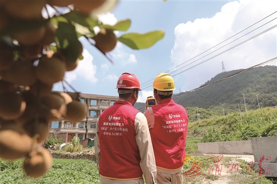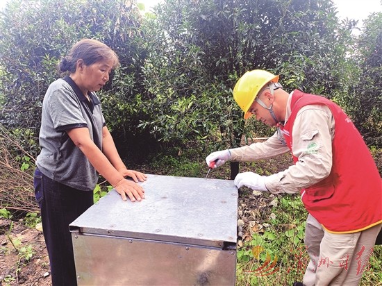 仙游供电公司共产党员服务队走进果园开展用电服务。