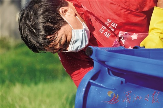 7时许,当黄色的清运车把剩下的其他垃圾都运走后,李美妹就拖着水管,把其他6个垃圾桶再一一清洗,而后冲刷墙壁、地面和角落。垃圾分类屋在她手里,被收拾得像洁净的店铺。