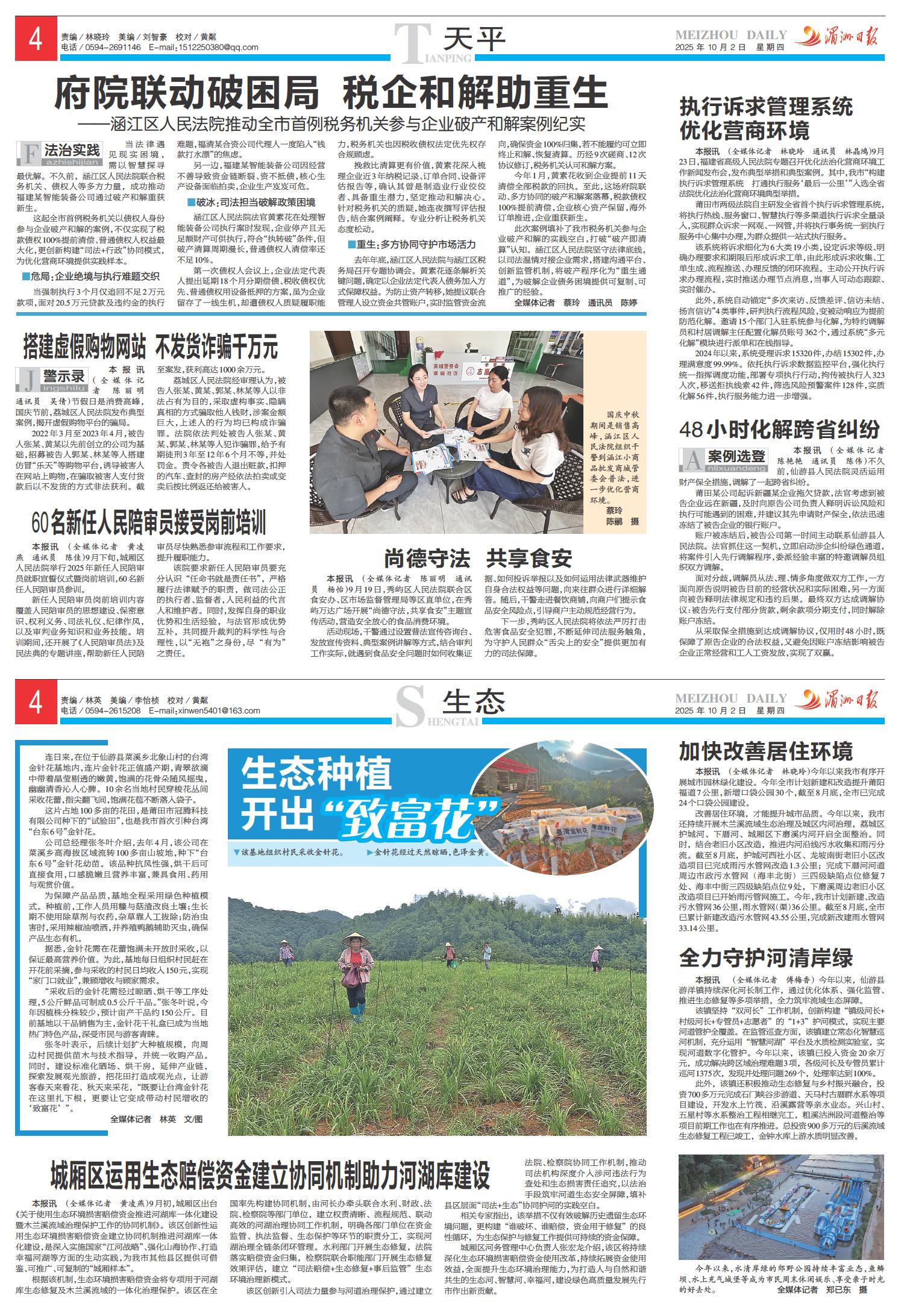 城厢区运用生态赔偿资金建立协同机制助力河湖库建设