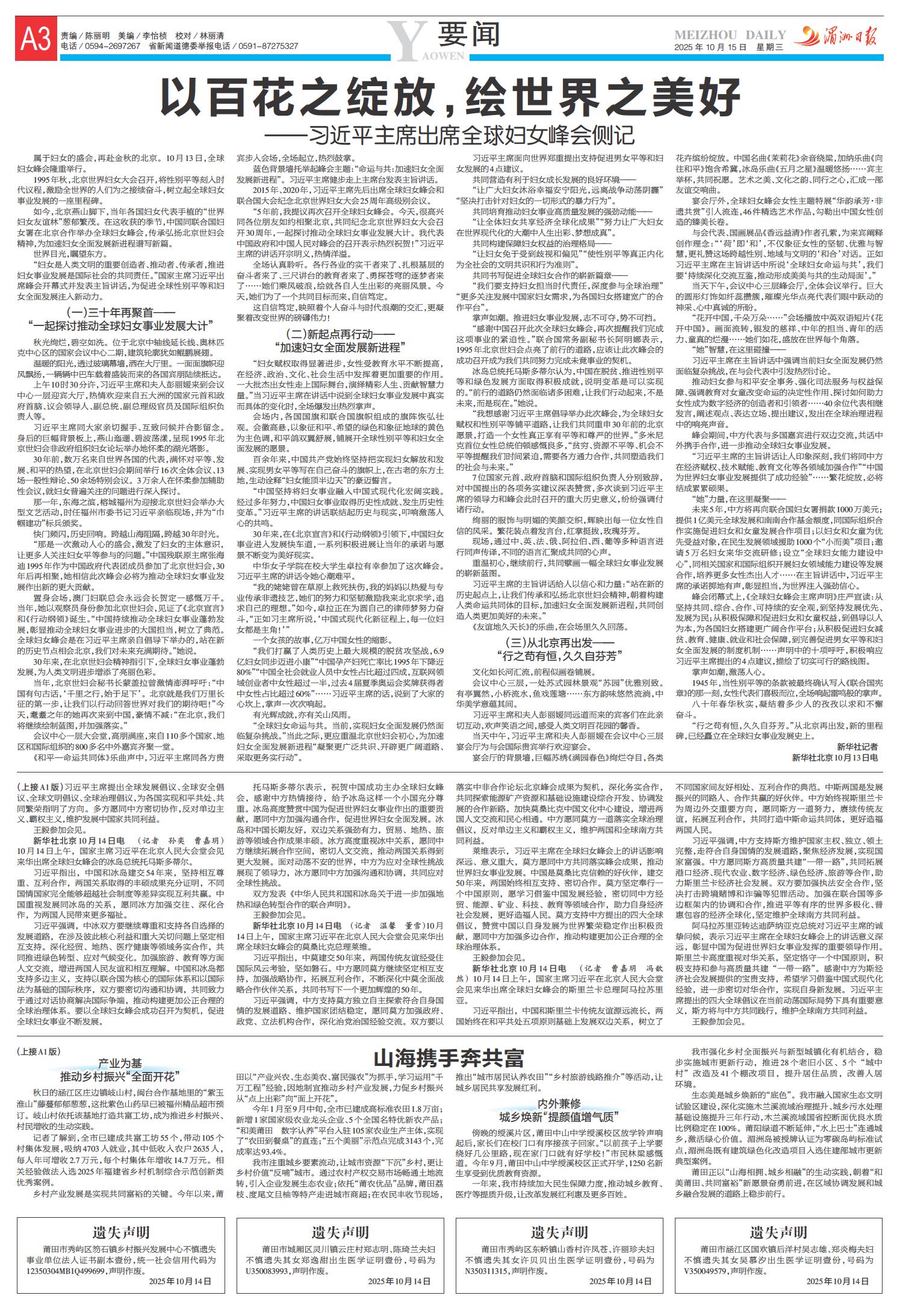 A1 要闻 A2 要闻 A3 要闻 A4 国内国际 B1 产经 B2 城厢观察 教育 B3 天平 B4 卫生