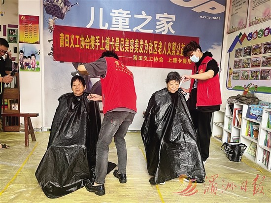 组织志愿者免费为老人理发。