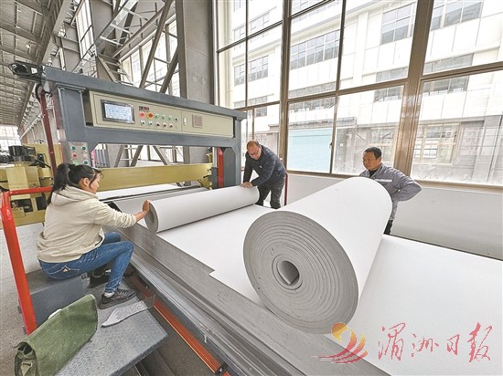 1月下旬,记者来到位于仙游县枫亭镇的福建腾达亿高新材料有限公司采访看到,厂房内智能化设备有序运转,生产出一卷卷灰色的泡棉,其表面呈现出细密的蜂窝状气孔。在切割区,工人们根据指令操控设备,调整泡棉尺寸。一旁的质检区内,则堆放着刚刚下线的产品。