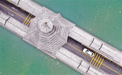 这是12月28日在贵州省铜仁市玉屏侗族自治县舞阳河国家级湿地公园拍摄的雪景。近日,多地迎来降雪天气。雪后的乡村、古城、梯田、茶园银装素裹,宛如一幅精致的画作,美不胜收。 新华社 发