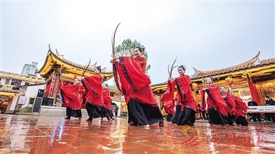 荔城区文化馆馆长黄金梅介绍,北宋熙宁初年,在此建“仆射坊”表彰重视农桑的名臣陈靖。陈靖一生力主务兴农事,辑成《劝农奏议》。在他去世40多年后,王安石变法,宋神宗、王安石以此书为蓝本,实施农田水利法、青苗法。王安石变法留下5万多个陂堰渠坝等农田水利设施,其中就有莆田的木兰陂水利工程。因陈靖《劝农奏议》匡时济世之功,朝廷特赠陈靖“尚书左仆射”,并旌表立坊。原有牌坊于明代中期毁坏,重立的“仆射坊”成为兴化府历史文化街区一处醒目地标。此次新春文化节,首次在“仆射坊”下举办神农祭祀活动,既展示优秀传统文化,又纪念陈靖对农业的贡献。