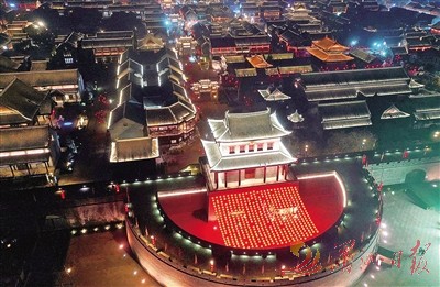 1月8日晚拍摄的山东省青岛市即墨古城夜景。随着春节临近,山东即墨古城张灯结彩,洋溢着喜庆的年味。 新华社 发