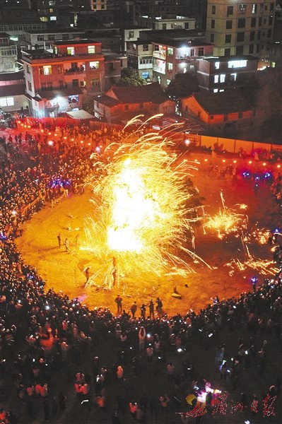 本报讯 (全媒体记者 戴立钦)熔铁作水水生金,泼向庭树尽银花。2月2日(农历正月十二),荔城区新度镇锦墩村迎来一年一度的打砂花闹元宵活动,村民们在火光四溅中,祈愿新年平安,纳福迎祥(如图)。该项元宵习俗已有300多年的历史,享有“火树银花不夜天”的赞誉,是省级非物质文化遗产。