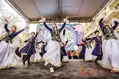 3月19日,人们在阿塞拜疆首都巴库举行庆祝活动,迎接即将到来的诺鲁孜节。