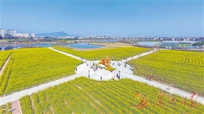 秀屿区土海湿地公园百亩油菜花田,成为春日里一道生态美景。